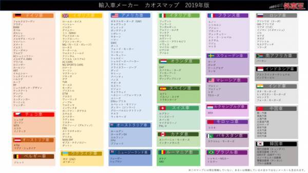 外車王 輸入車メーカーの全体像が分かる 輸入車メーカー カオスマップ 19 を公開 19年1月30日 エキサイトニュース